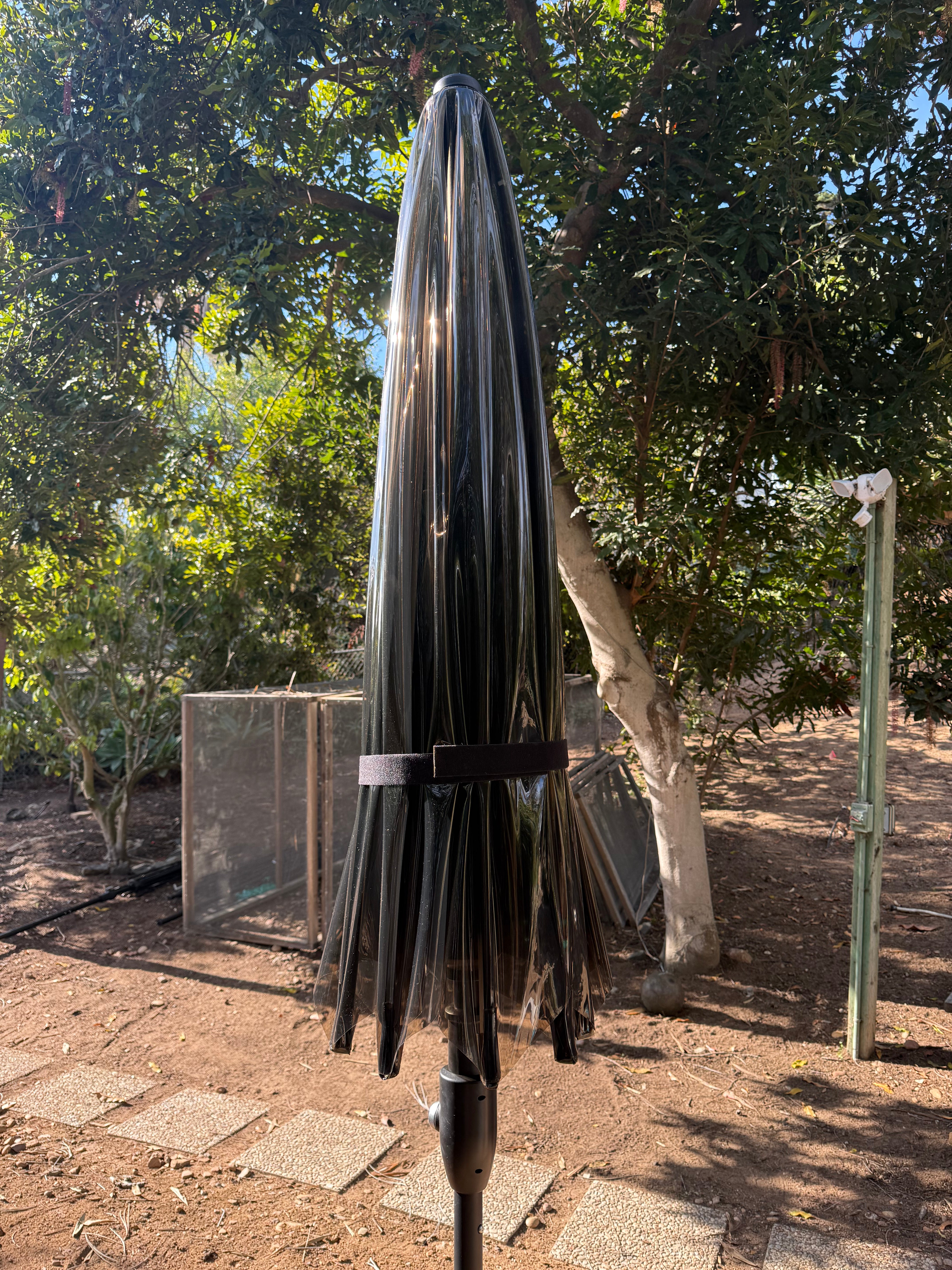 9ft canopy diameter with a sturdy, modern frame ideal for patios and balconies.